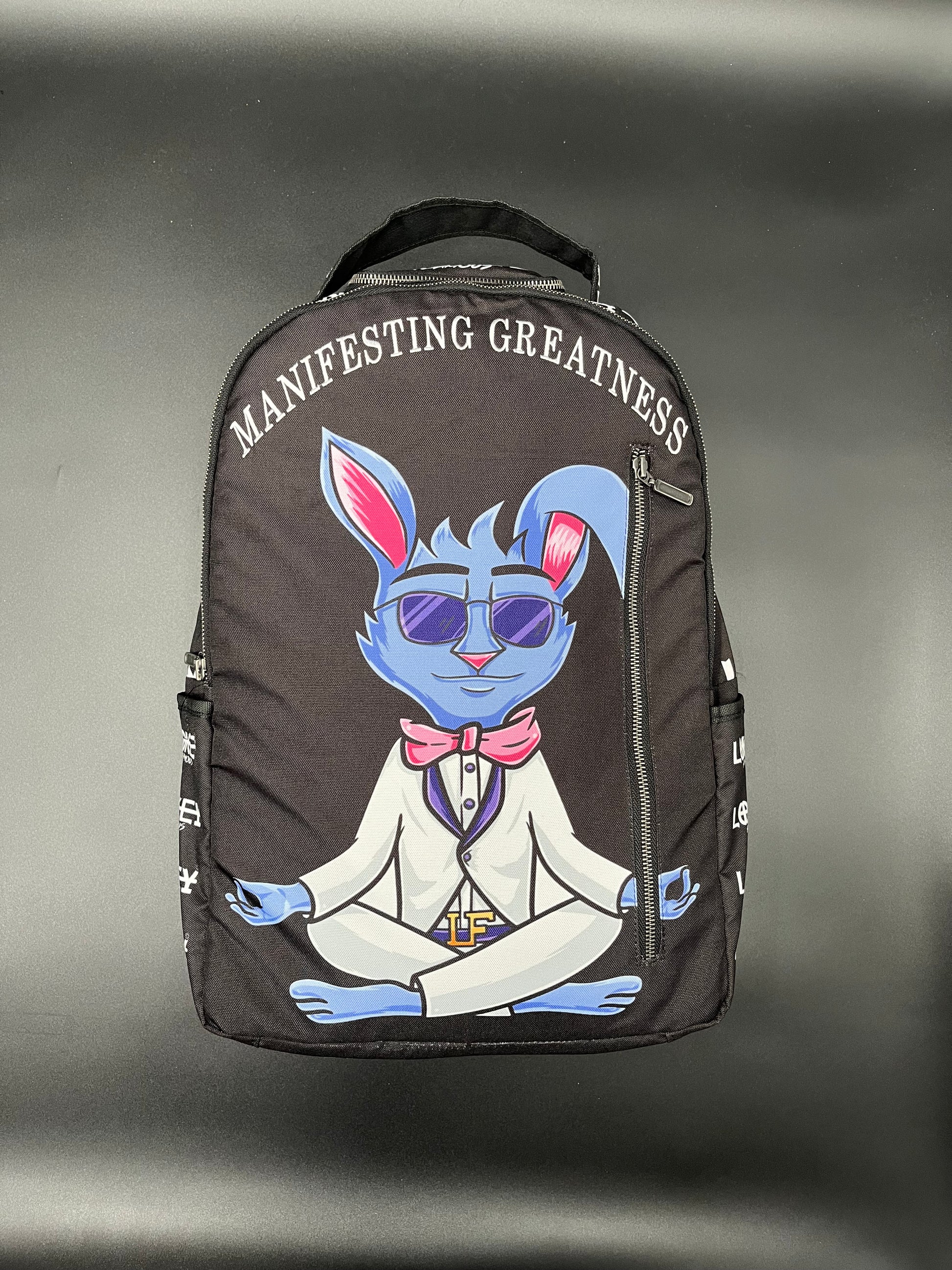 Black Bunny Manifesting Greatnesses Book bag with several pockets including laptop pocket as well